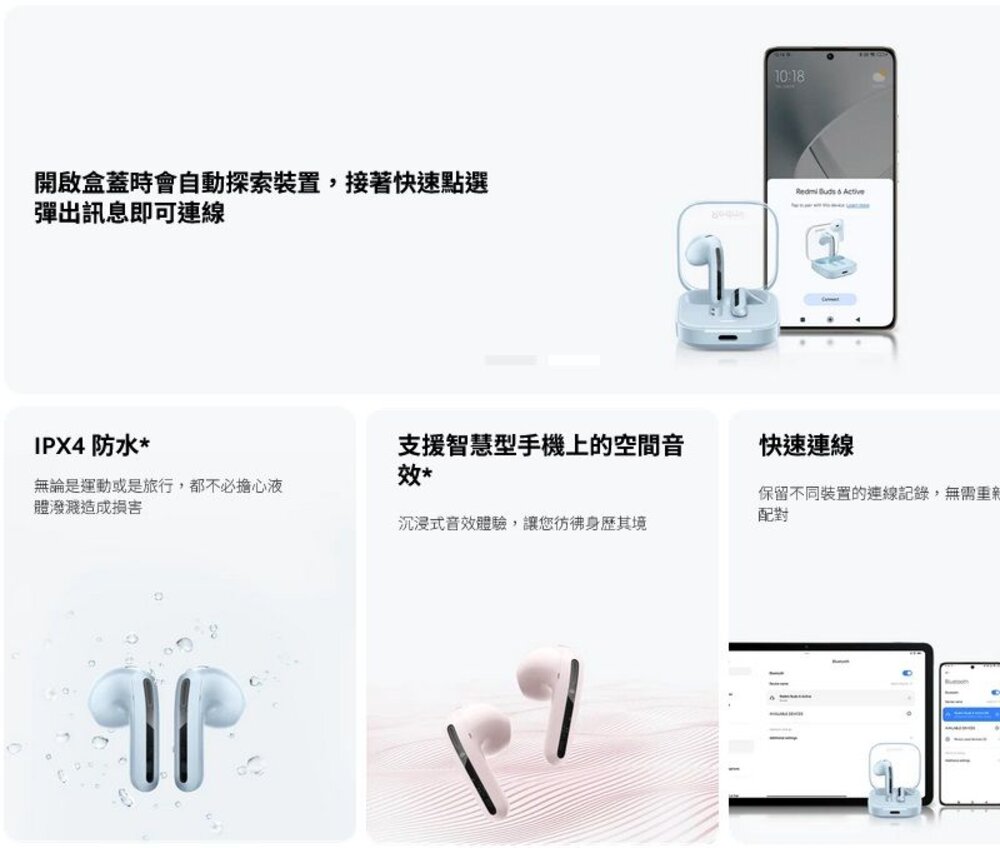電池壽命:單次充電的電池續航力6 小時;搭配充電盒使用時的電池續航力30 小時