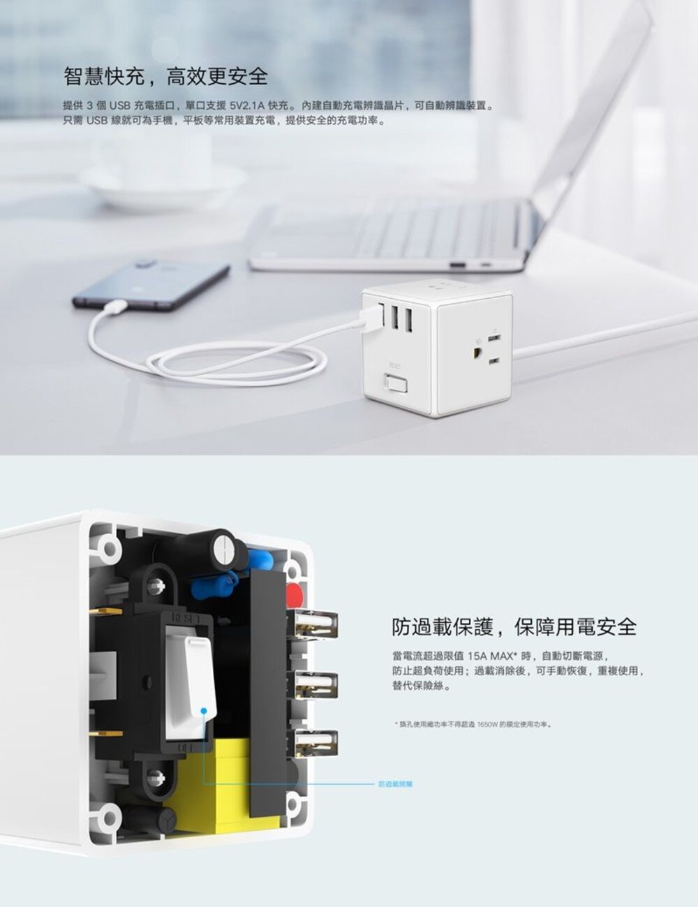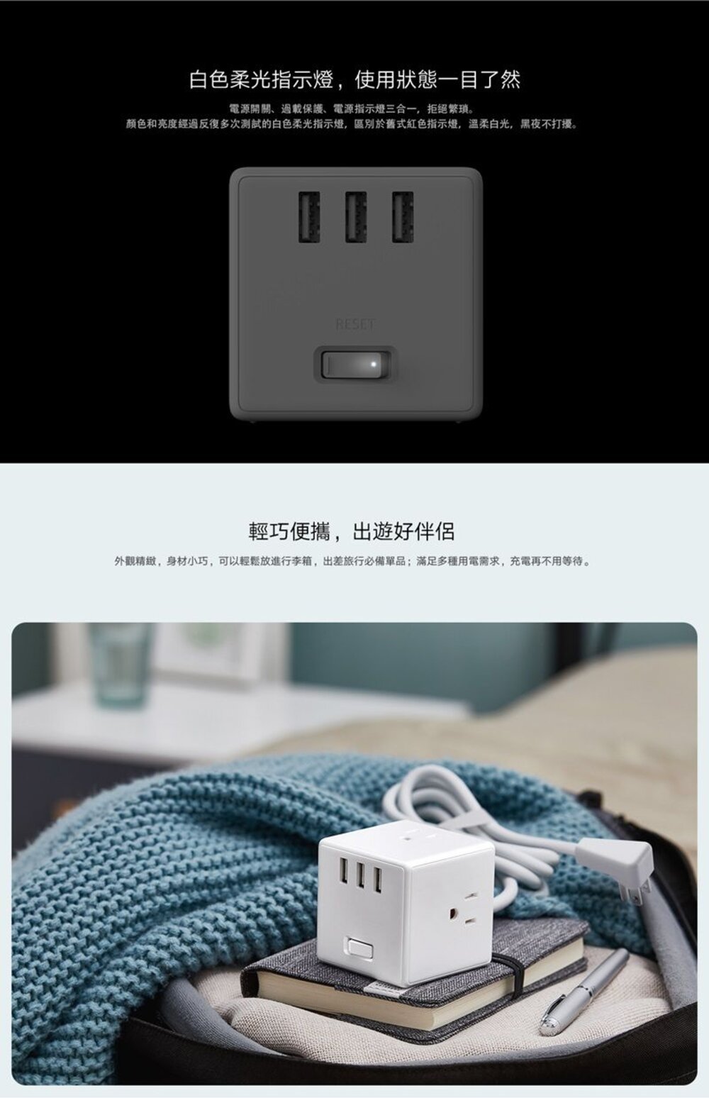 【MJCXB3-03QM】 小米 米家魔方延長線 立體造型 USB孔 *3 小巧便攜 多重安全保障