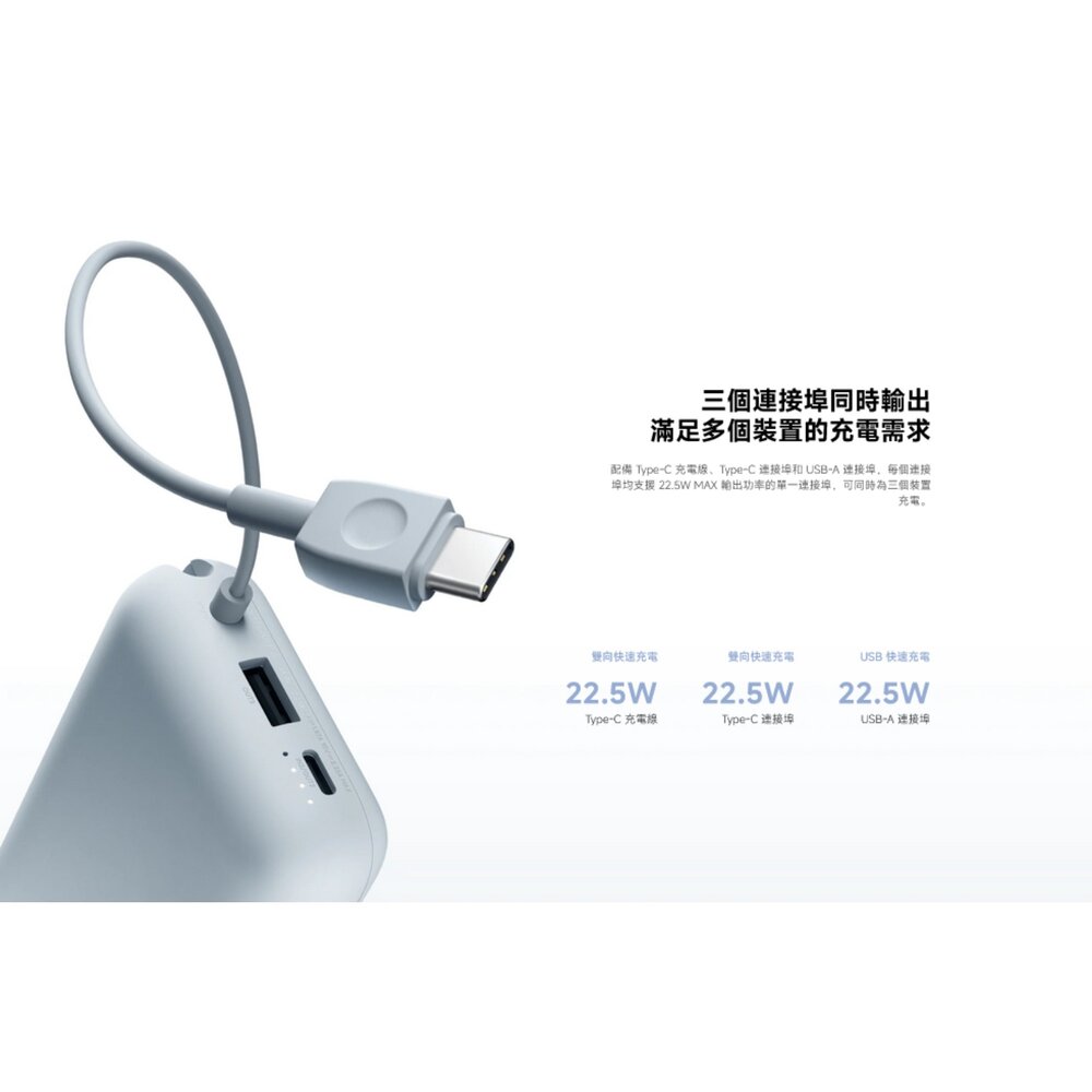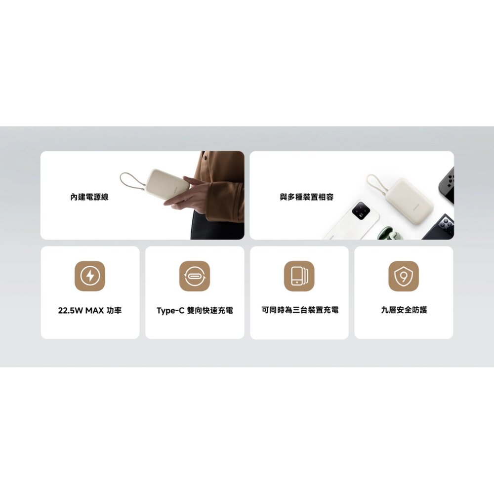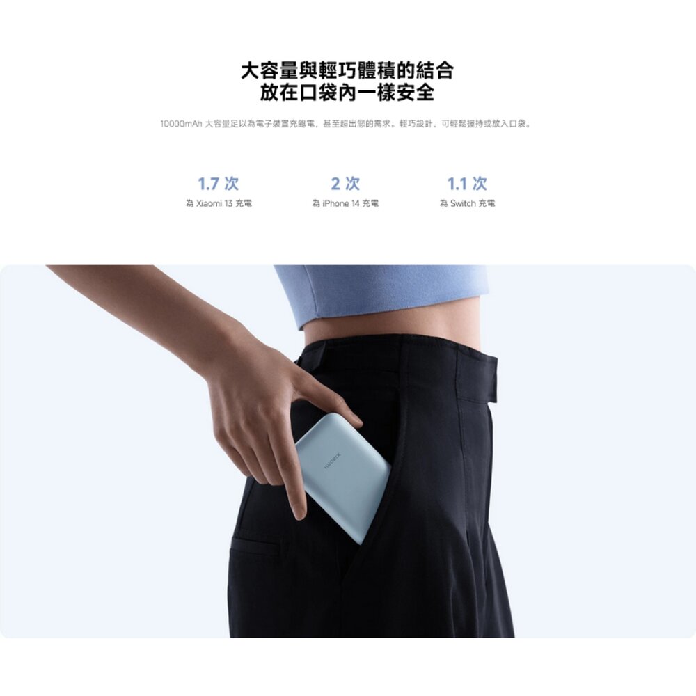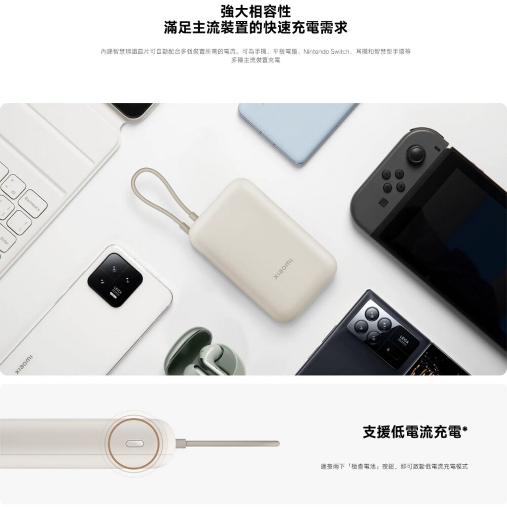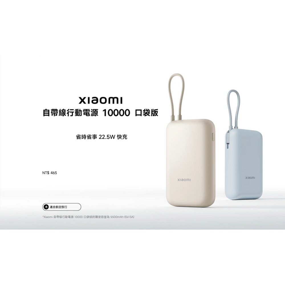 包裝內容物:Xiaomi 自帶缐行動電源 10000 口袋版 x1、使用者手冊 x1