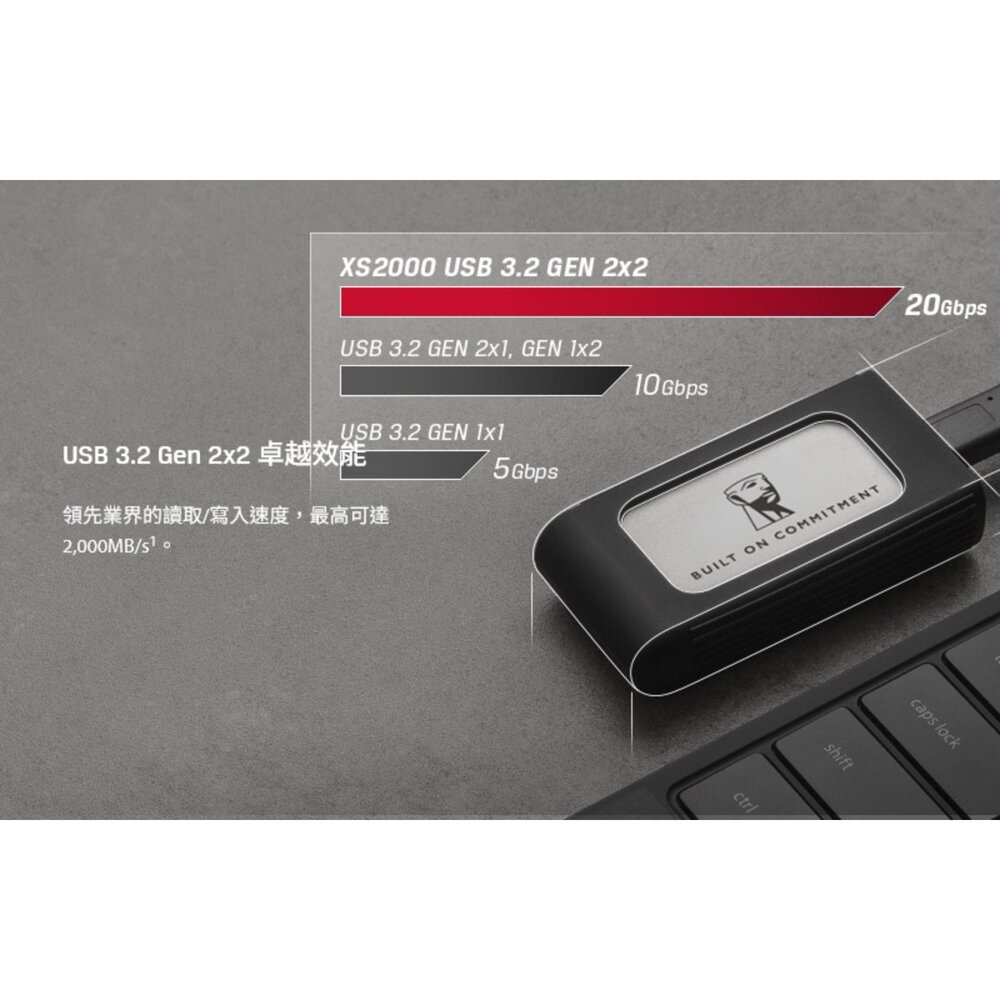 Kingston XS2000 外接式 SSD 固態硬碟具備高速儲存功能,同時採用輕巧便攜的口袋型設計。