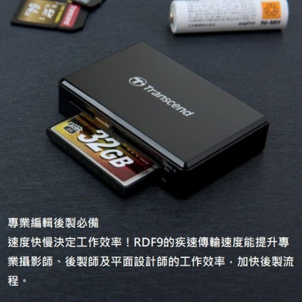 此外,多功能的RDF9讀卡機搭載CompactFlash、SD及microSD讀卡槽,一機多用的設計讓檔案傳輸無往不利!